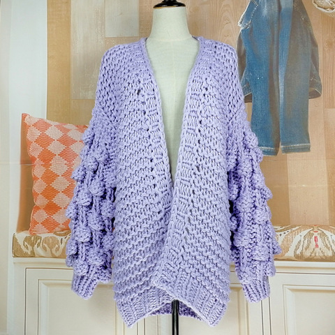 سترة نسائية طويلة سميكة مفتوحة من الأمام واسعة من الكروشيه الملون المنسوج يدويًا للأمهات