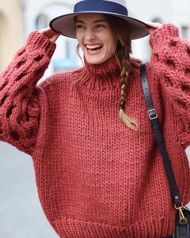 Maglione maglione girocollo maglione lavorato a mano in lana di cotone lavorato a mano per donna