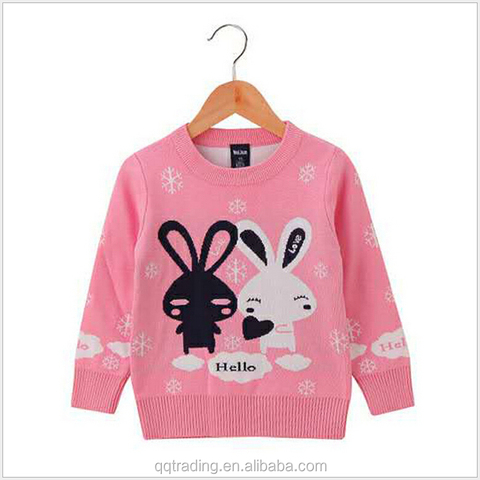 Neueste Kaninchen Cartoon Wolle Baumwolle Strickmuster Kinder Pullover Designs Modell für Kinder