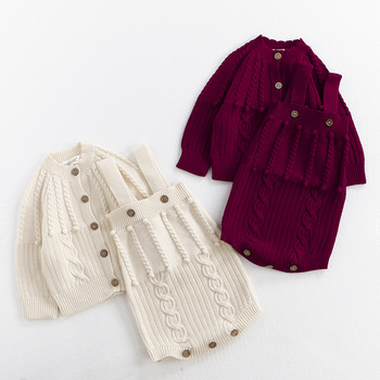 Ano Novo Natal 3M-3Y Infantes & Crianças Chunky Cabo Cardigan Camisola Vermelho Branco Romper Conjuntos de Roupas
