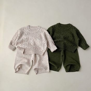 2024 Outono New Boys Girls Sweater Set Toddler Knitted Pullover Top Calças Suit Baby Clothing Set